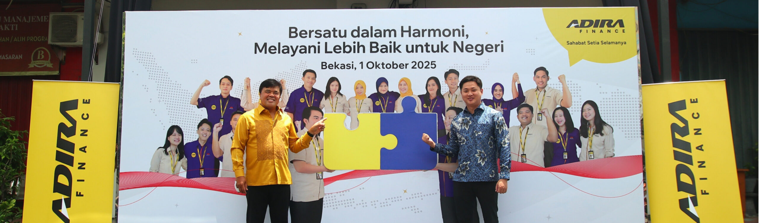 Untuk menandai hari efektif penggabungan secara hukum (Legal Day-1), Adira Finance menyelenggarakan seremoni di cabang Adira Finance (dahulu Mandala Finance) Bekasi dengan tema “Bersatu dalam Harmoni, Melayani Lebih Baik untuk Negeri”.